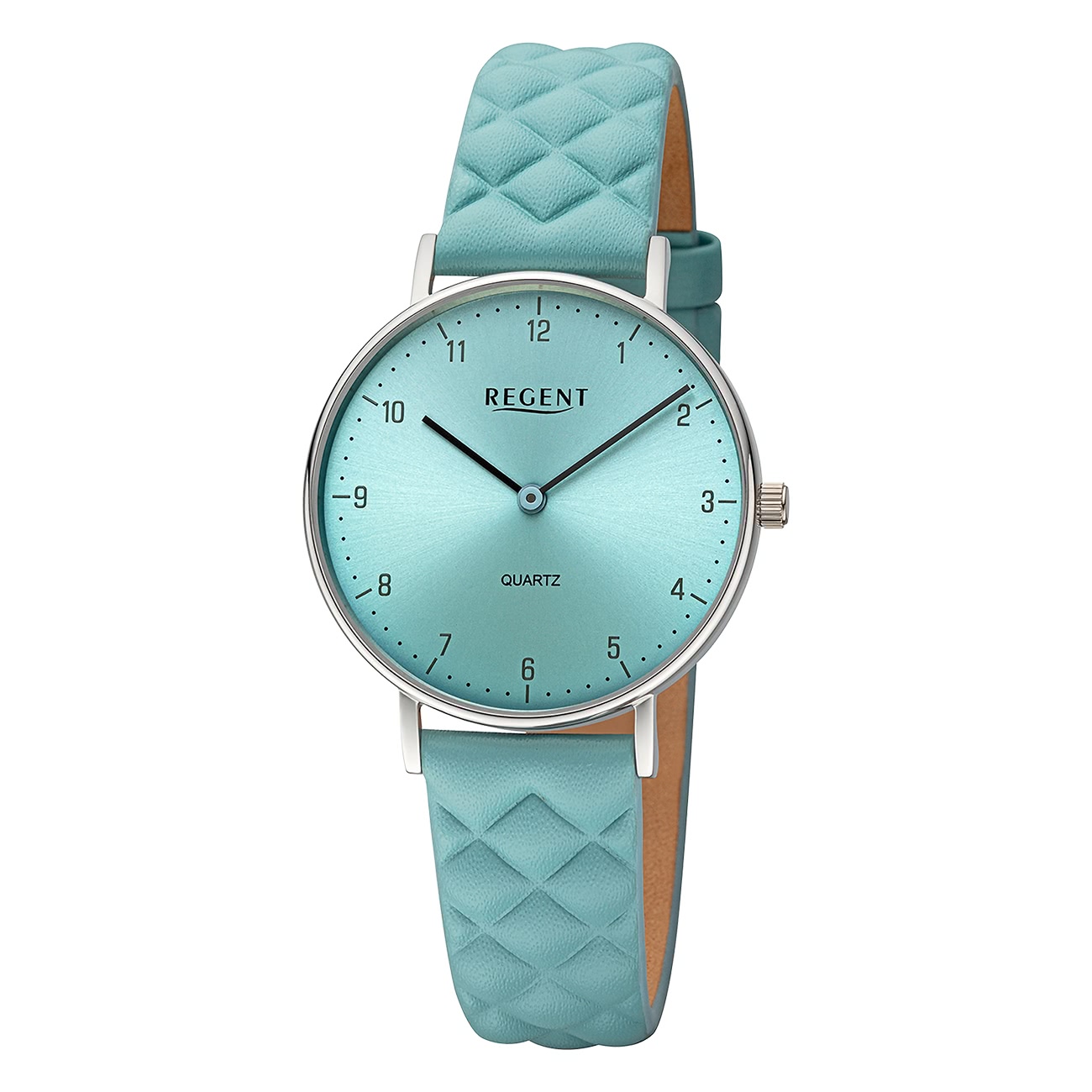 Regent Damenuhr Edelstahl-Armbanduhr Analog Lederarmband blau türkis URBA851