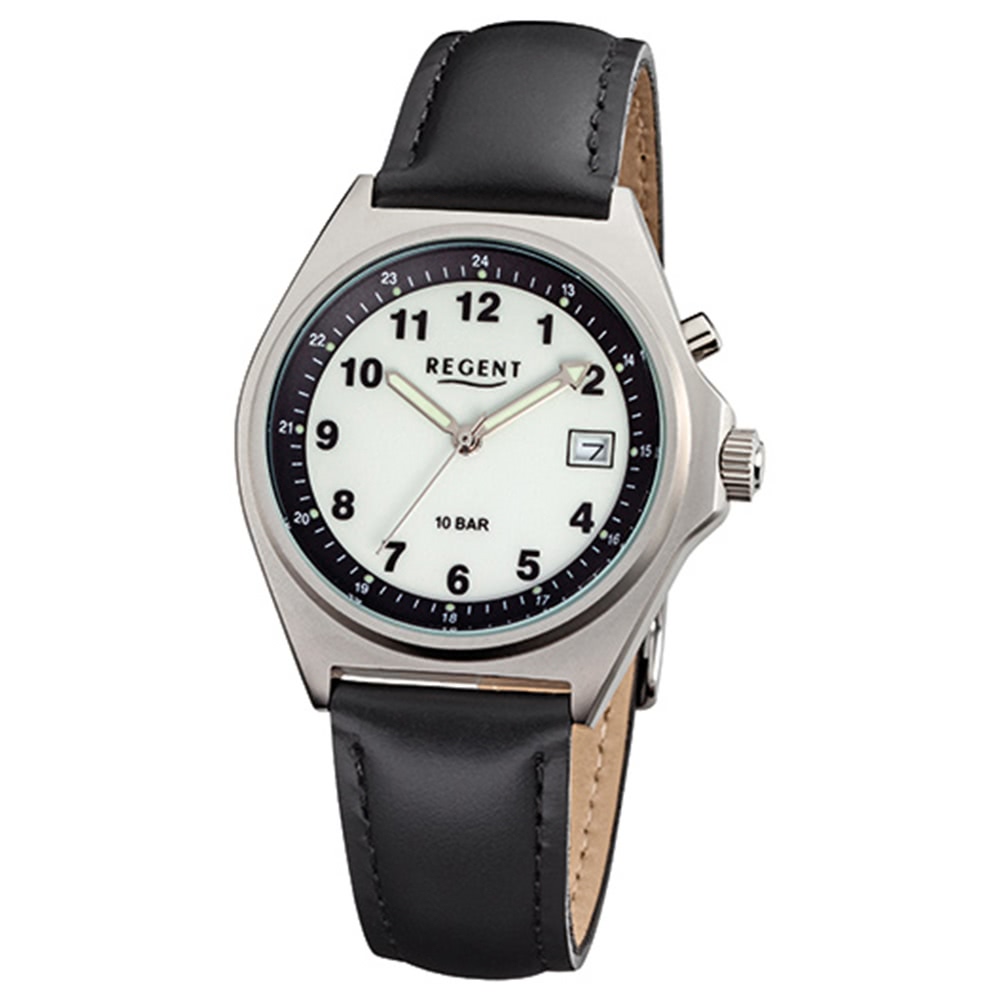Regent Herrenuhr F-096 Quarzuhr mit Leder-Armband schwarz URF096