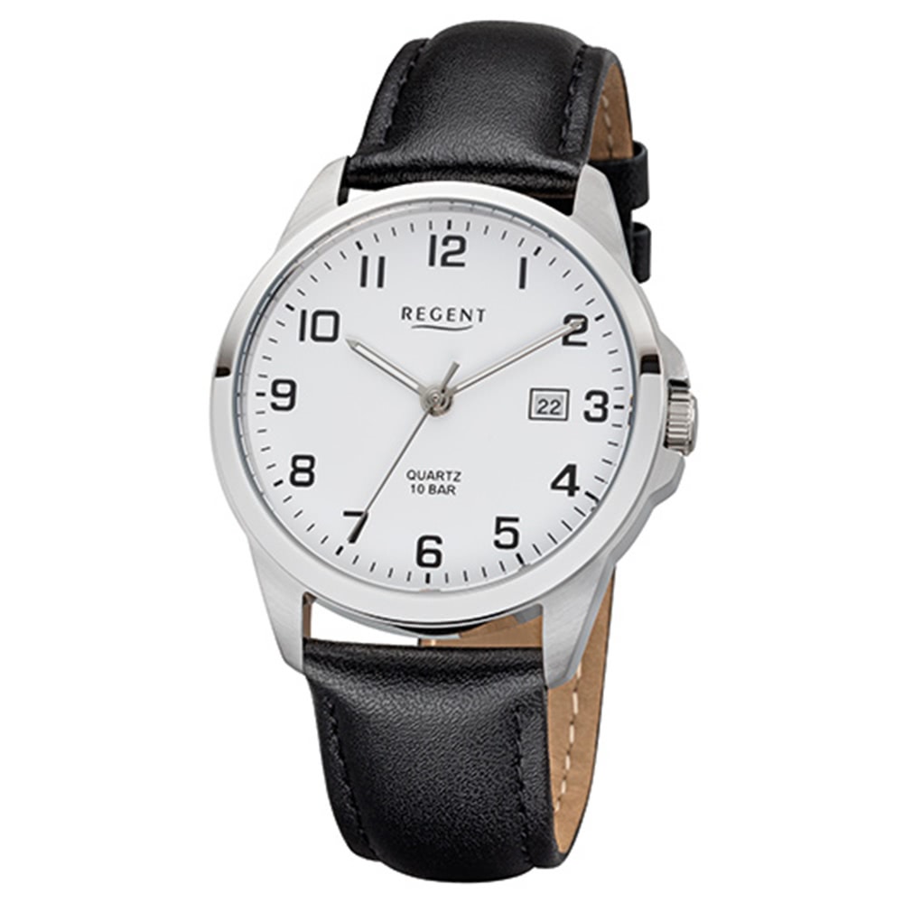 Regent Herrenuhr F-1007 Quarzuhr mit Leder-Armband schwarz URF1007