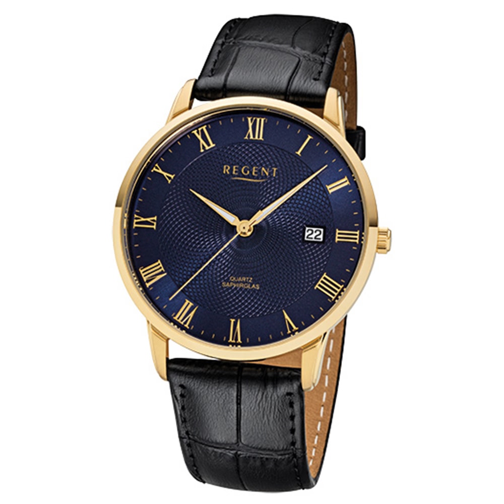 Regent Herrenuhr F-1032 Quarzuhr mit Leder-Armband schwarz URF1032