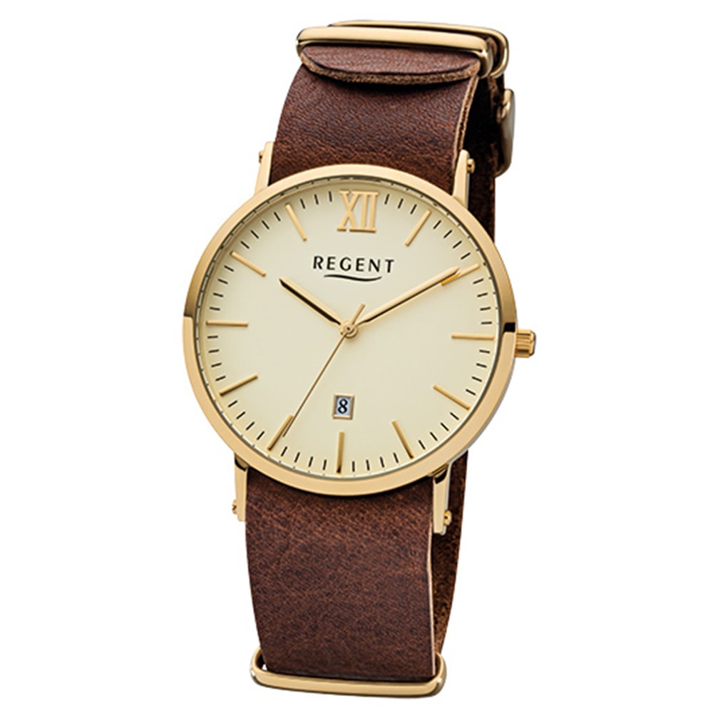 Regent Herrenuhr F-1033 Quarzuhr mit Leder-Armband braun URF1033
