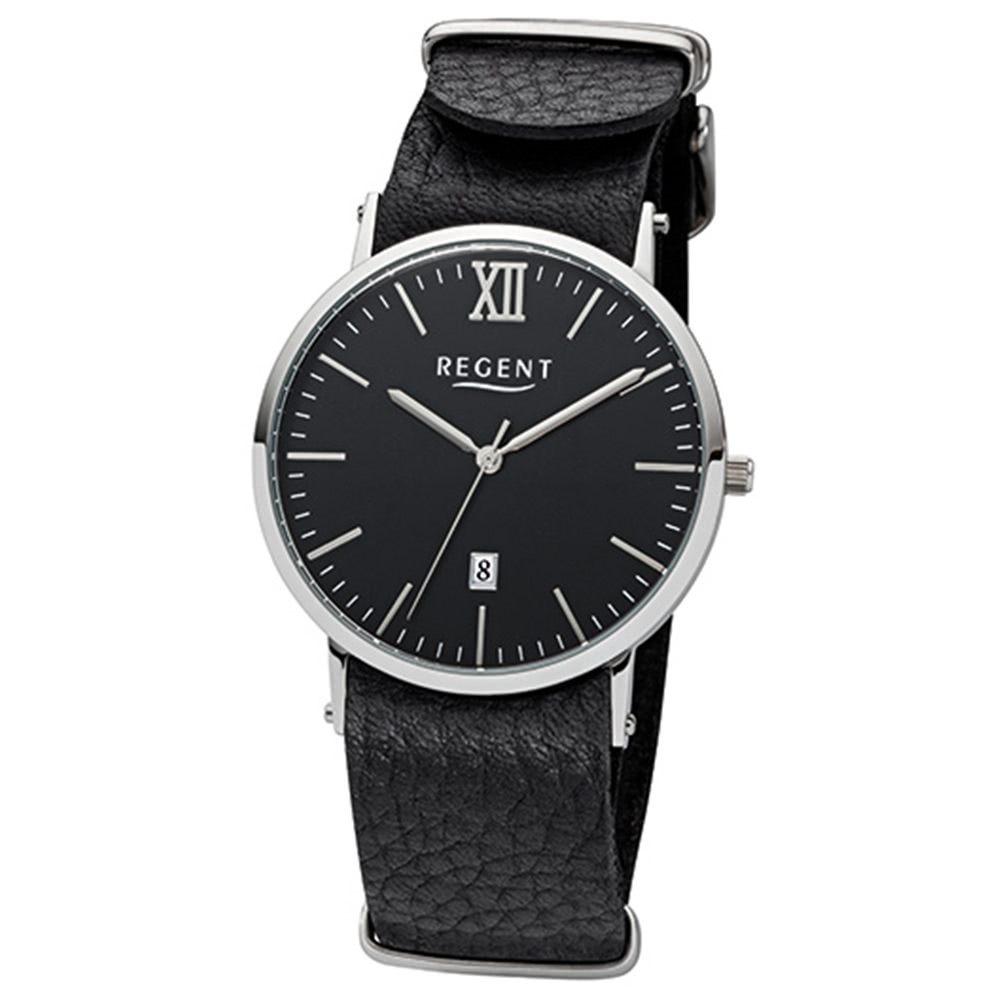 Regent Herrenuhr F-1035 Quarzuhr mit Leder-Armband schwarz URF1035