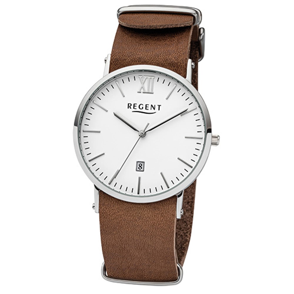 Regent Herrenuhr F-1036 Quarzuhr mit Leder-Armband braun URF1036
