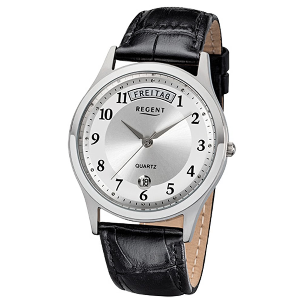 Regent Herrenuhr F-1039 Quarzuhr mit Leder-Armband schwarz URF1039