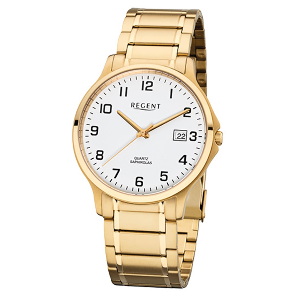 Regent Herrenuhr F-1043 Quarzuhr mit Edelstahl-Armband gold URF1043
