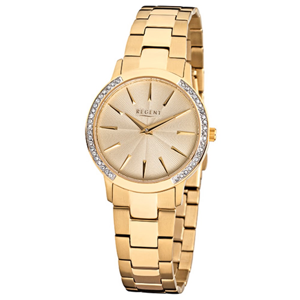 Regent Damenuhr F-1055 Quarzuhr mit Edelstahl-Armband gold URF1055