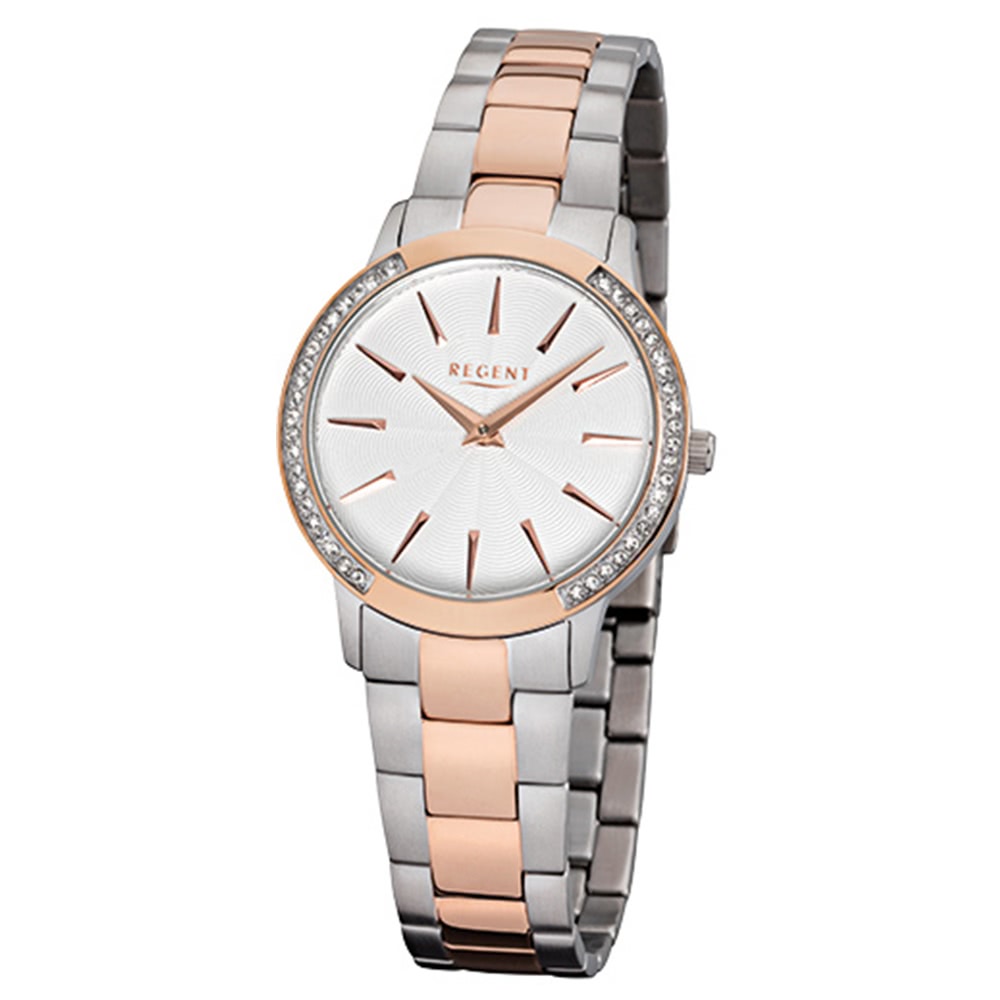 Regent Damenuhr F-1056 Quarzuhr mit Edelstahl-Armband silber rosegold URF1056