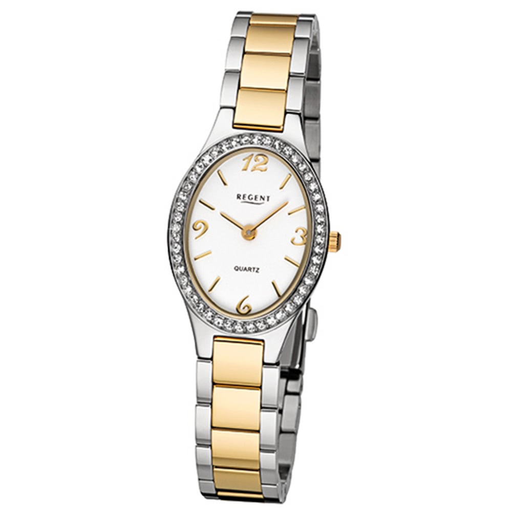 Regent Damenuhr F-1066 Quarzuhr mit Edelstahl-Armband silber gold URF1066