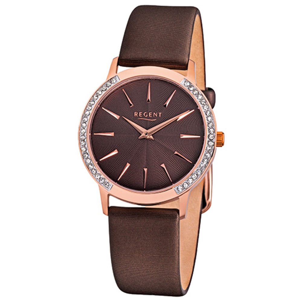 Regent Damenuhr F-1076 Quarzuhr mit Leder-Armband braun URF1076