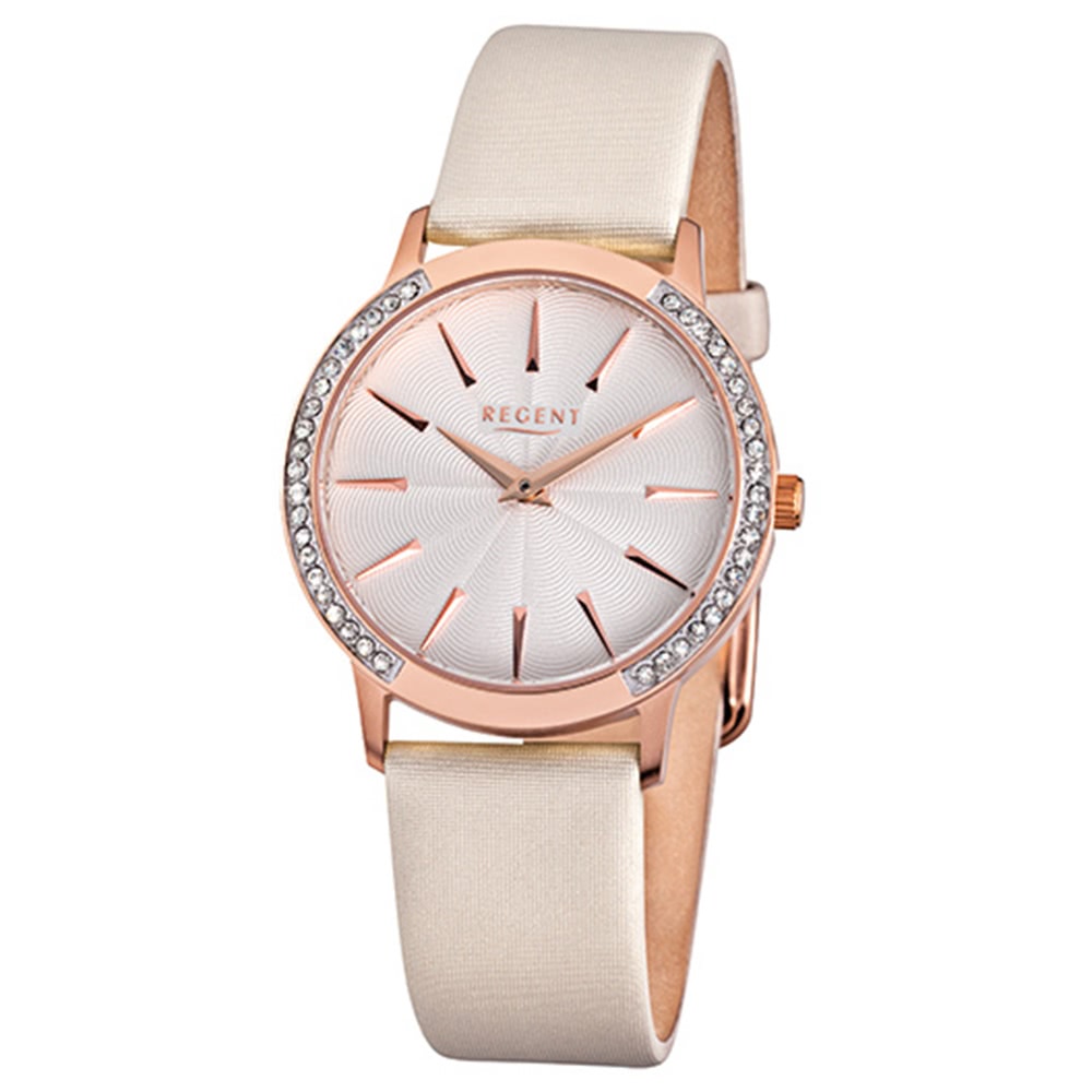 Regent Damenuhr F-1079 Quarzuhr mit Leder-Armband beige weiß URF1079