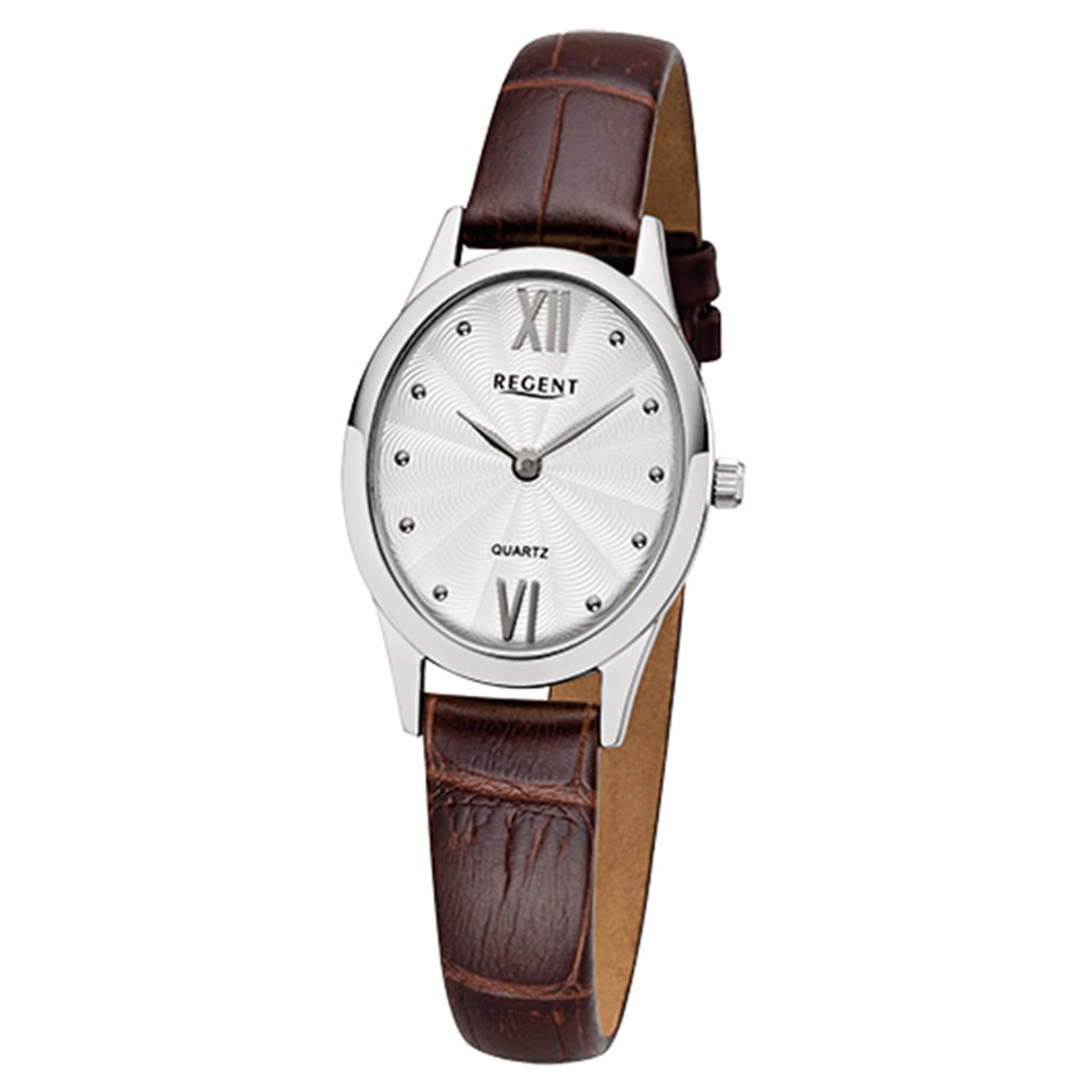 Regent Damenuhr F-1080 Quarzuhr mit Leder-Armband braun URF1080