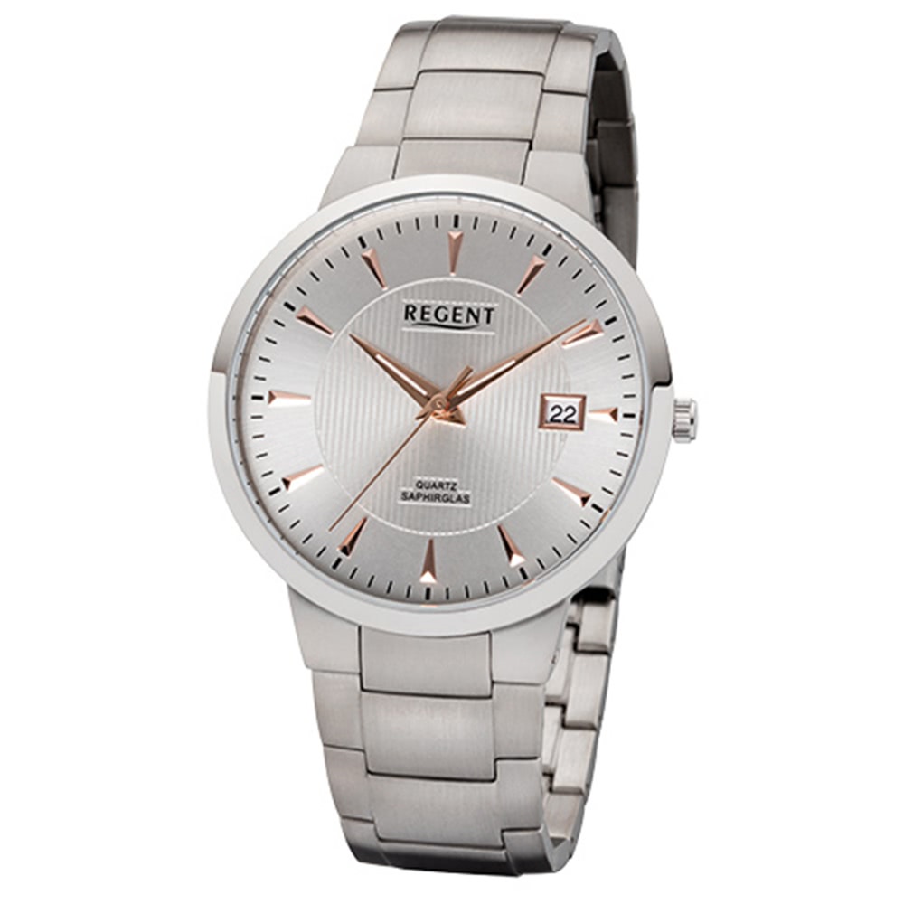 Regent Herrenuhr F-1115 Quarzuhr mit Titan-Armband silber grau URF1115