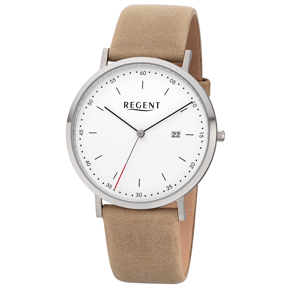Regent Lederarmband Herren Uhr F-1140 Analog Armband-Uhr Leder beige URF1140