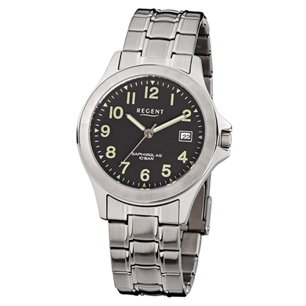 Regent Metallarmband Herren Uhr F-116 Armbanduhr Analog Edelstahl silber URF116A