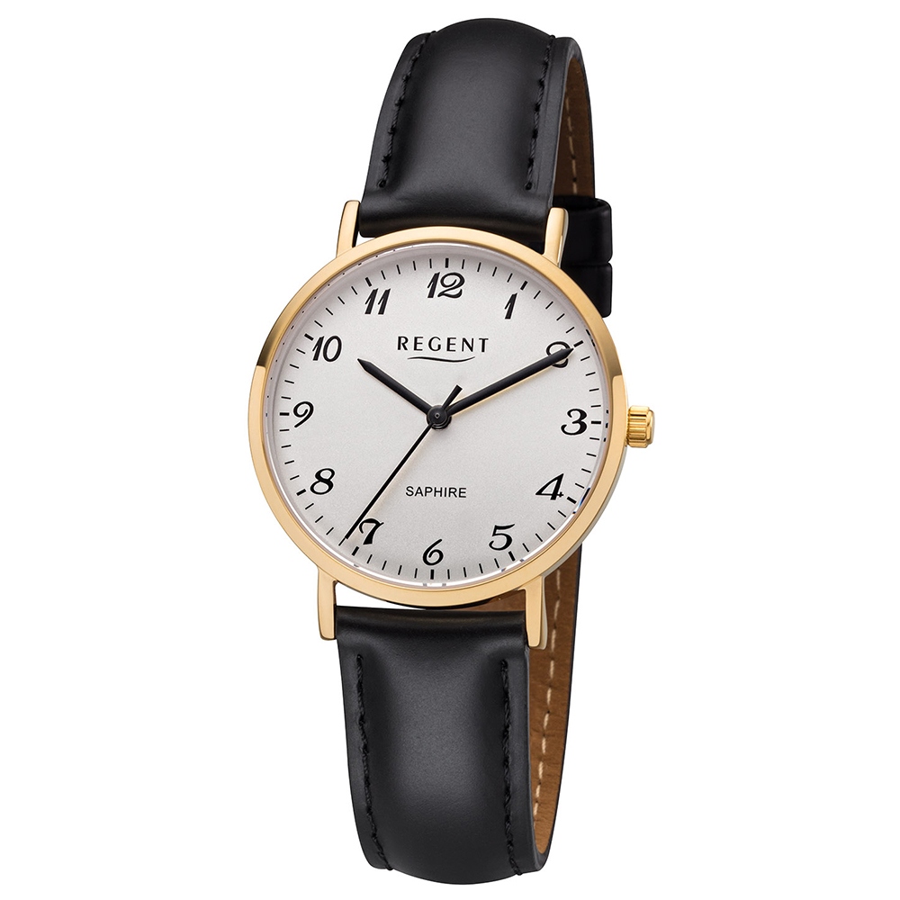 Regent Lederarmband Damen Uhr F-1218 Analog Armband-Uhr Leder schwarz URF1218
