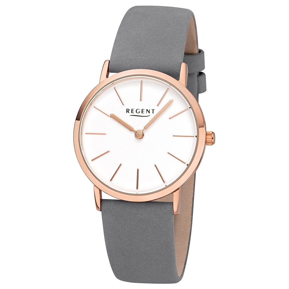Regent Lederarmband Damen Uhr F-1221 Analog Armband-Uhr Leder grau URF1221