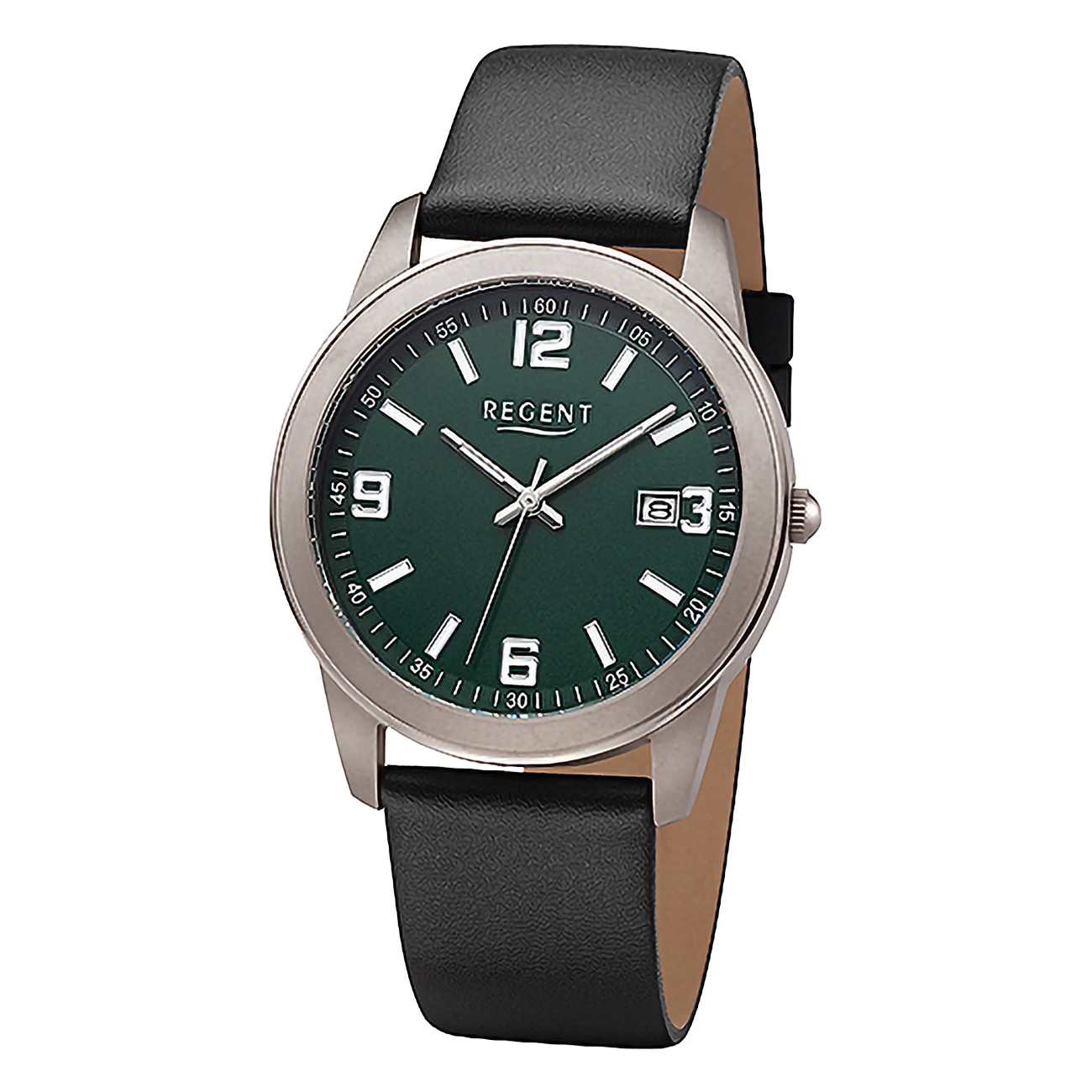 Regent Lederarmband Herren Uhr Armbanduhr Analog Leder schwarz URF1448