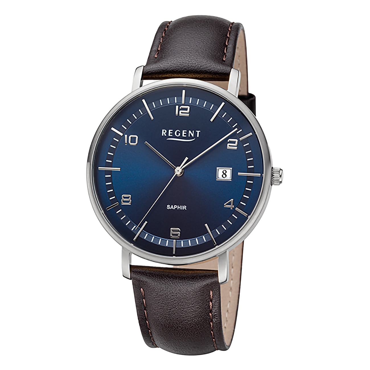 Regent Lederarmband Herren Uhr Armbanduhr Analog Leder dunkelbraun URF1515