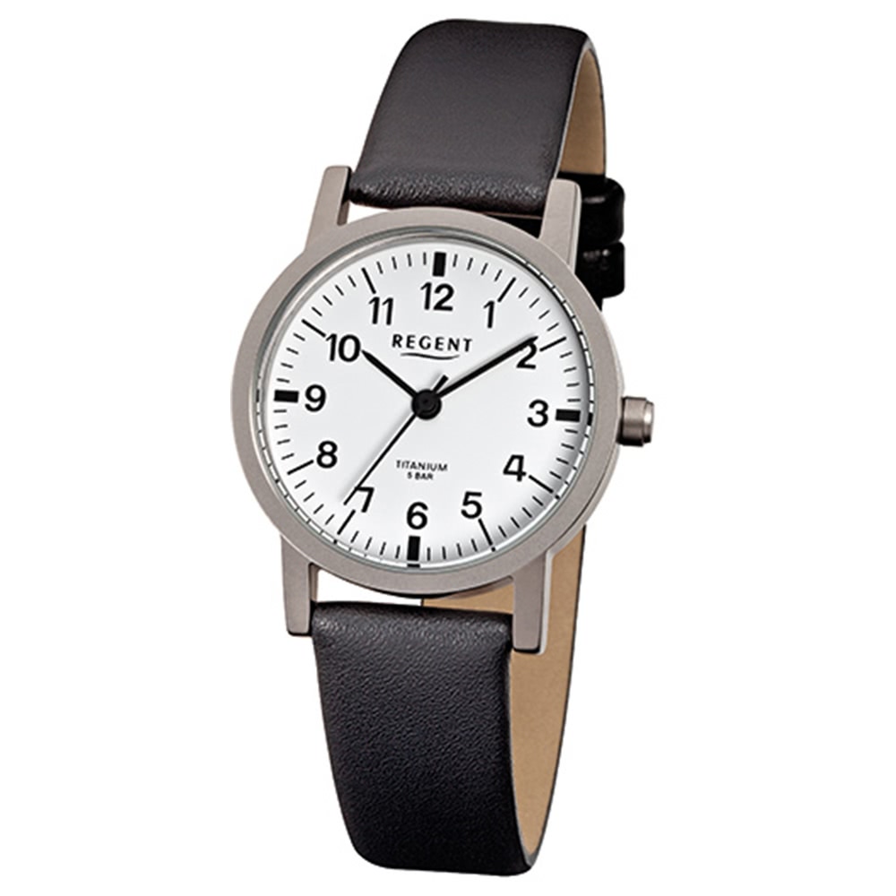 Regent Damenuhr F-241 Titanuhr mit Leder-Armband schwarz URF241