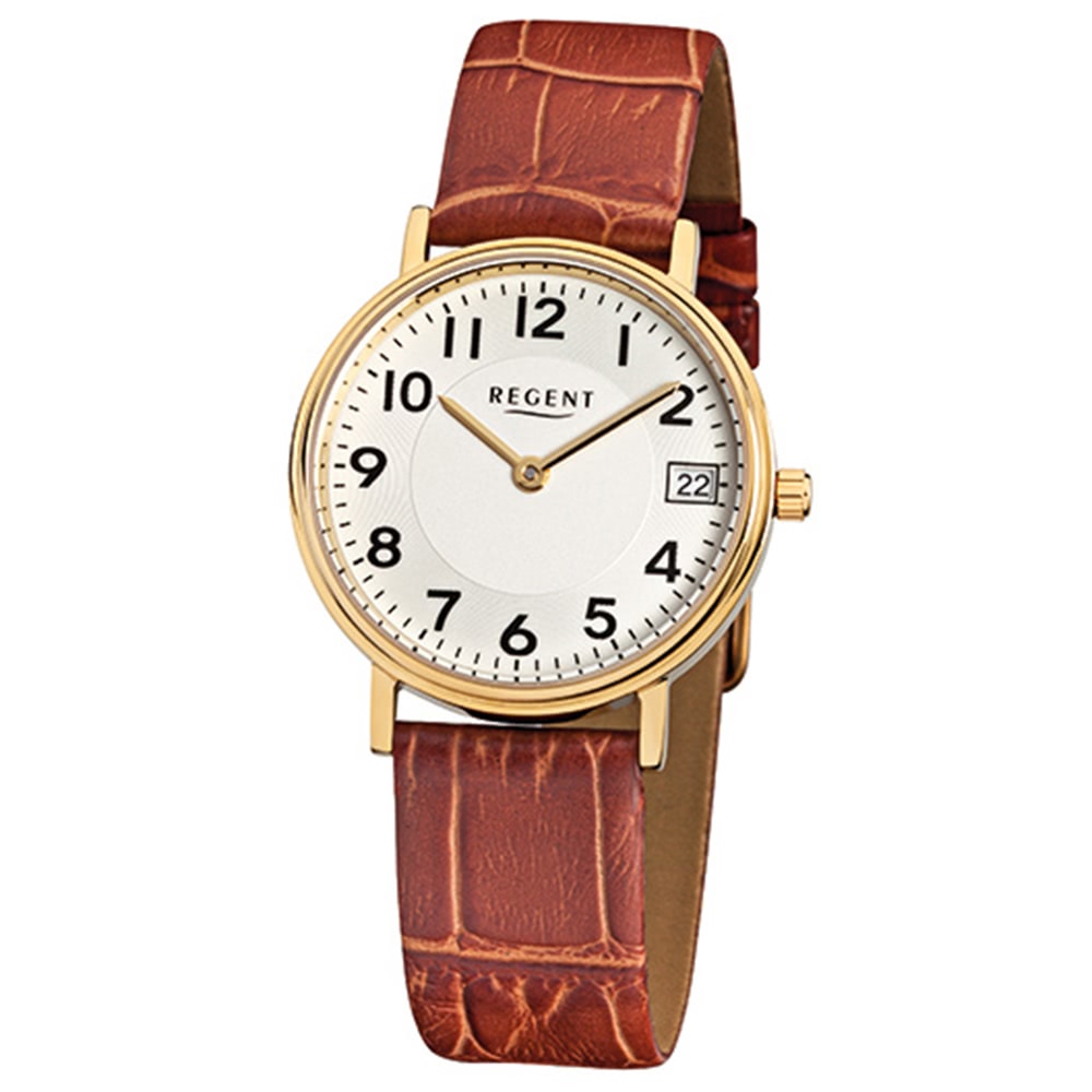 Regent Damenuhr F-328 Quarz-Uhr mit Leder-Armband braun URF328