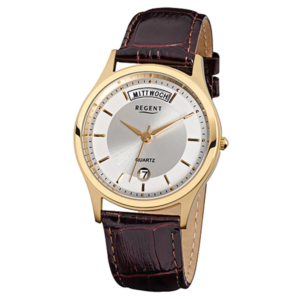 Regent Herrenuhr F-355 Quarz-Uhr mit Leder-Armband braun URF355