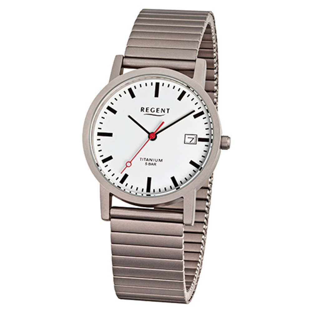 Regent Damen Herrenuhr F-475 Quarz-Uhr mit Titan-Armband silber grau URF475