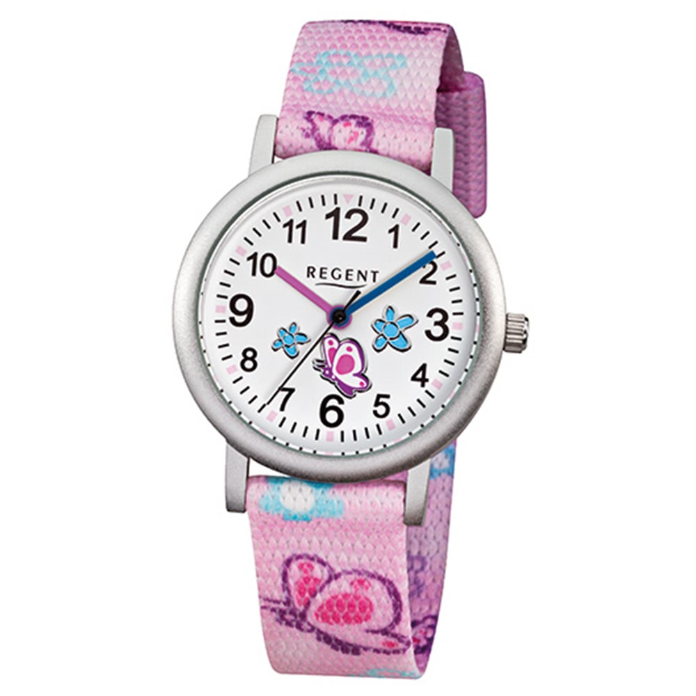Regent Kinderuhr F-491 Quarzuhr mit Textil-Armband rosa URF491