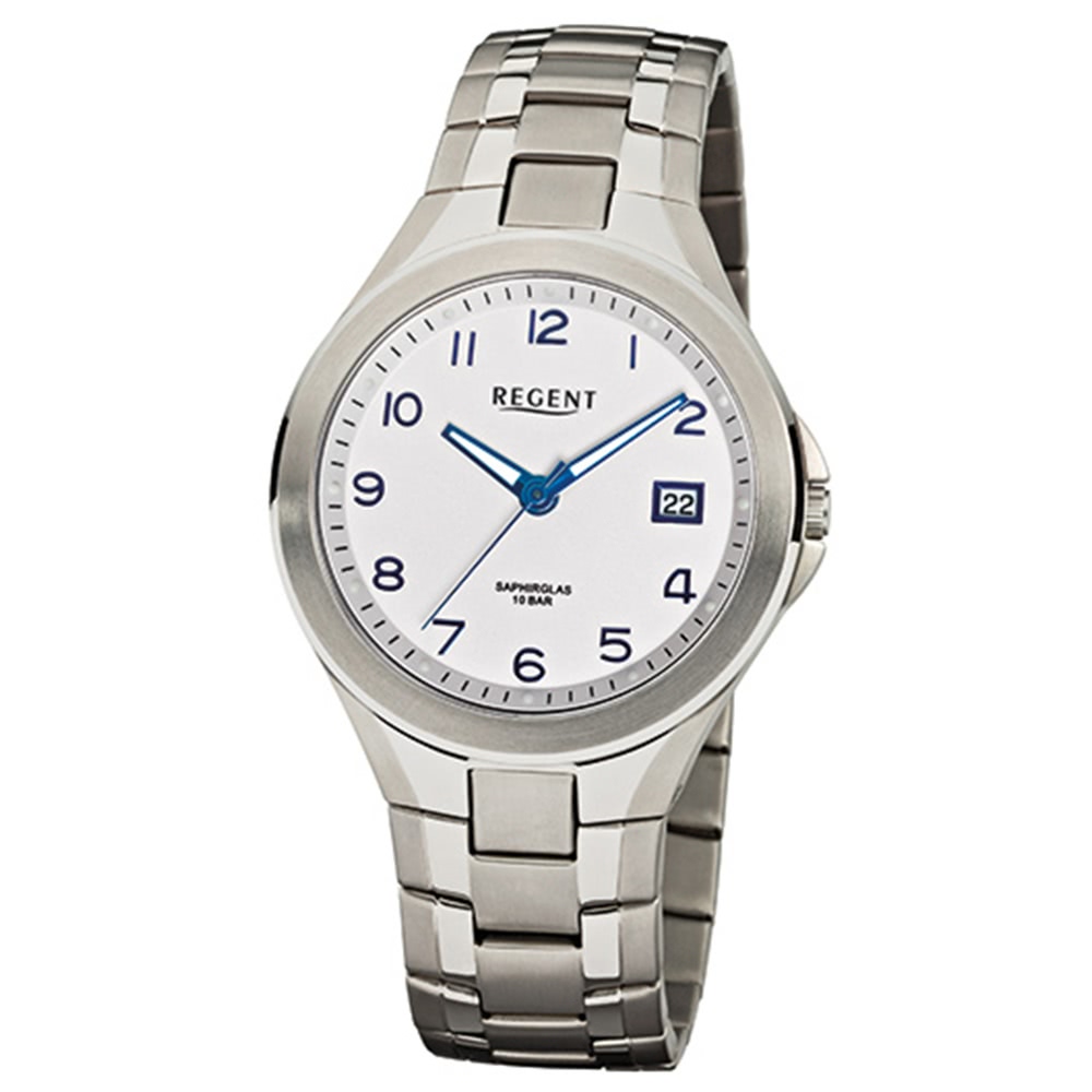 Regent Herrenuhr F-549 Quarz-Uhr mit Titan-Armband silber URF549