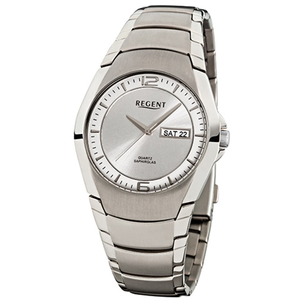 Regent Herrenuhr F-558 Quarz-Uhr mit Titan-Armband silber grau URF558