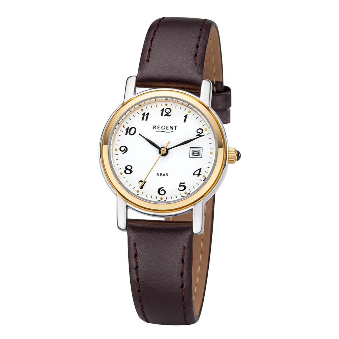 Regent Damenuhr F-571 Quarz-Uhr mit Leder-Armband braun URF571