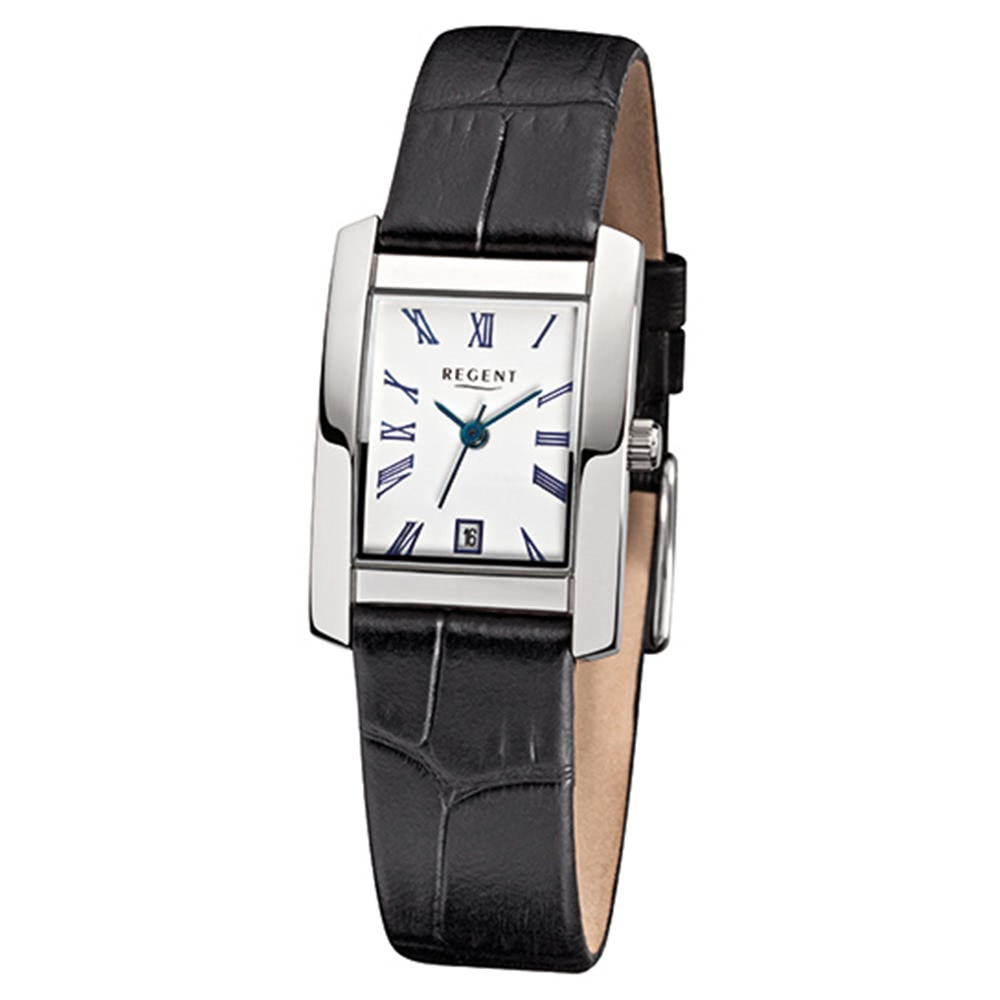 Regent Damenuhr F-585 Quarzuhr mit Leder-Armband schwarz URF585