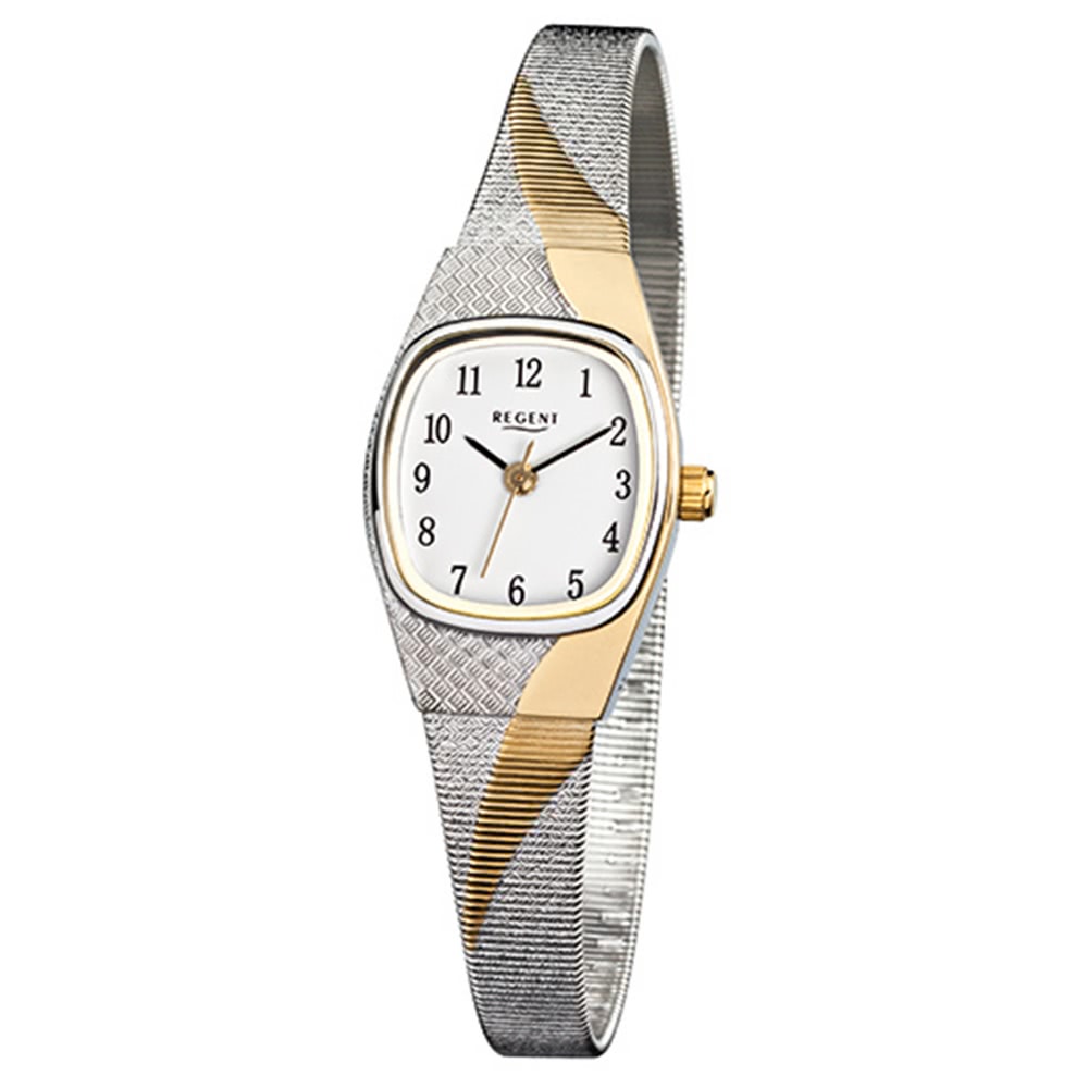 Regent Damenuhr F-625 Quarzuhr mit Edelstahl-Armband silber gold URF625