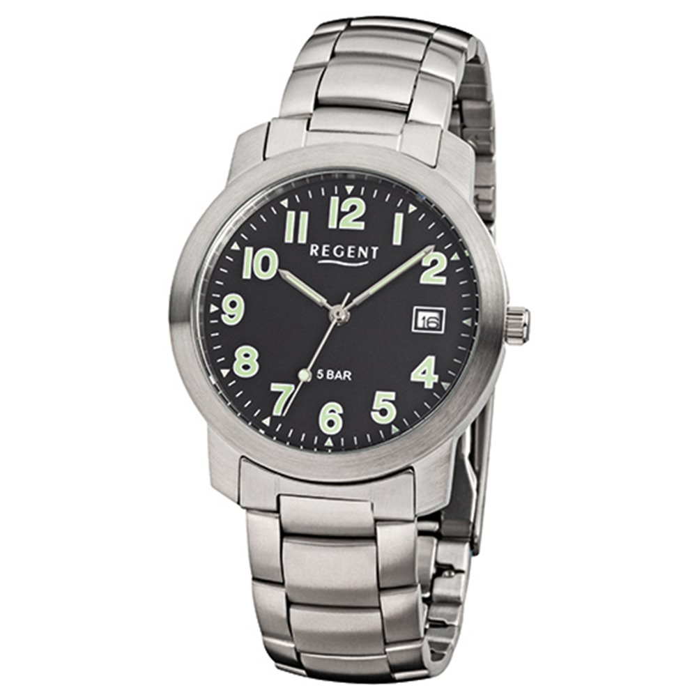 Regent Herrenuhr F-643 Quarz-Uhr mit Stahl-Armband silber URF643