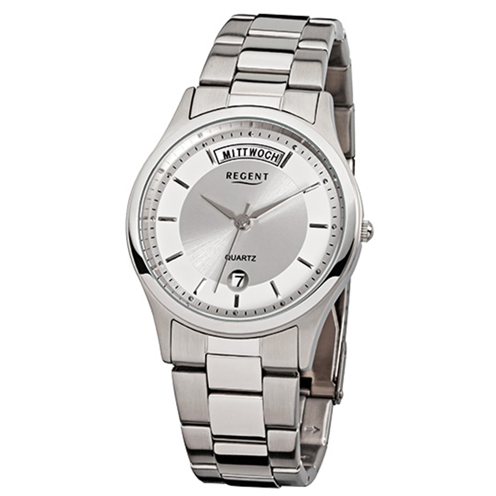 Regent Herrenuhr F-646 Quarz-Uhr mit Stahl-Armband silber URF646