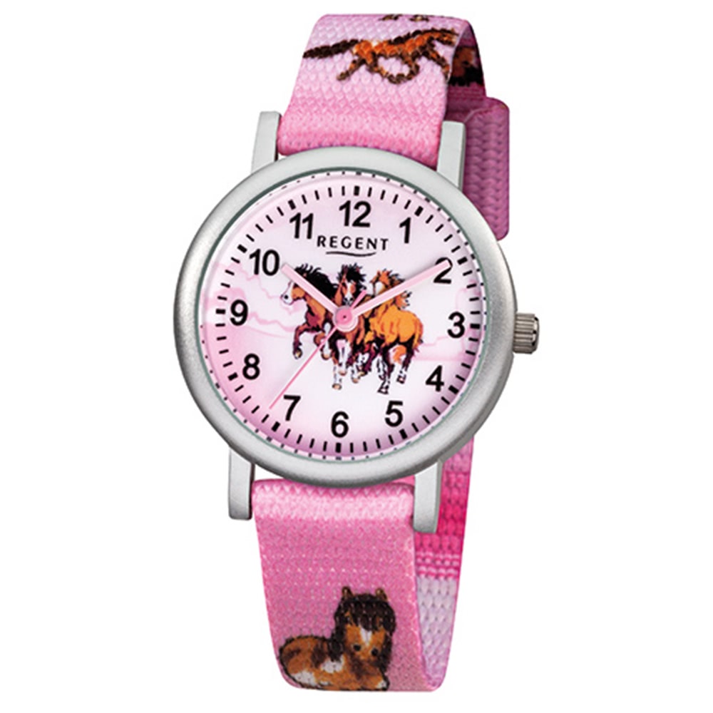 Regent Kinderuhr F-729 Quarzuhr mit Textil-Armband rosa URF729