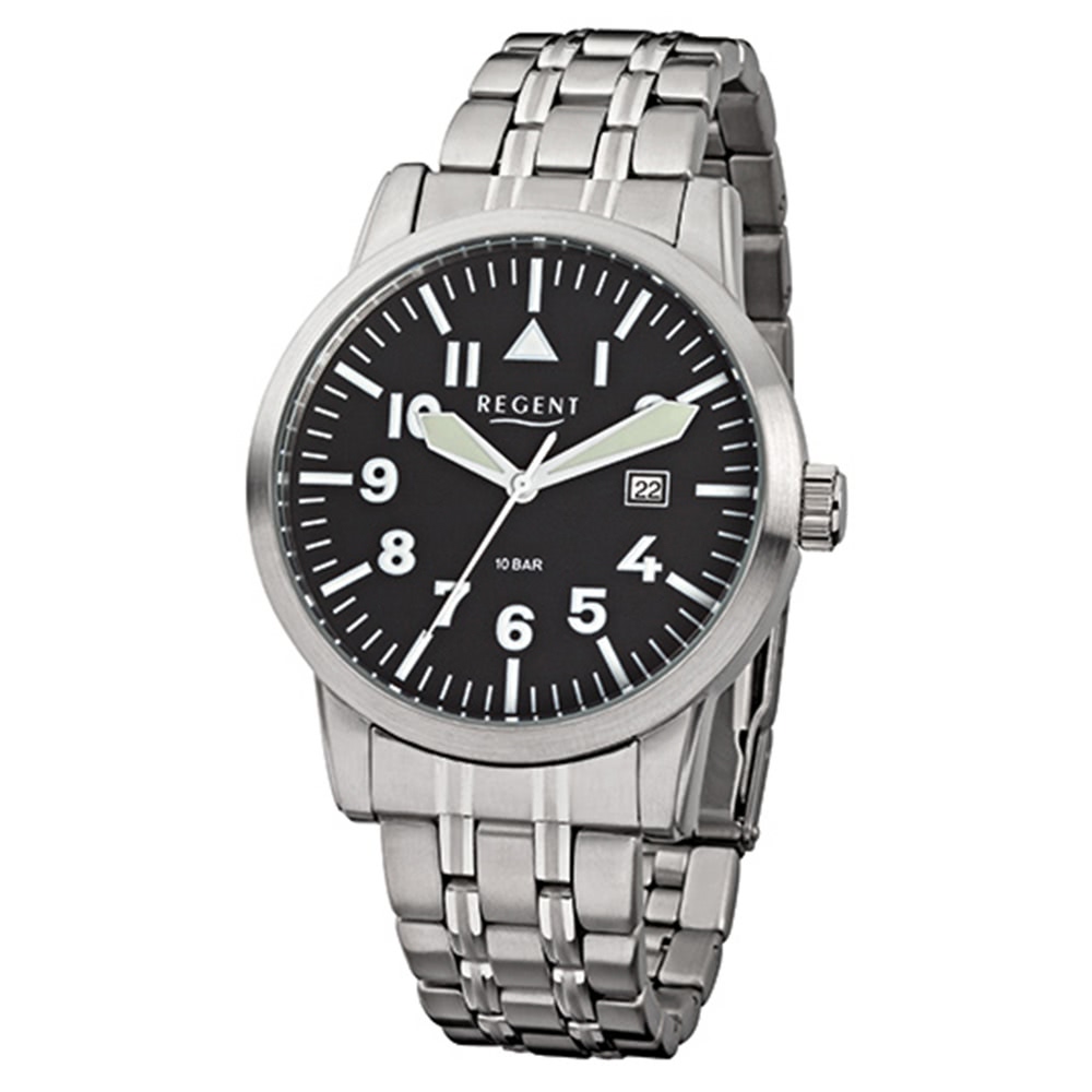 Regent Herrenuhr F-778 Quarz-Uhr mit Stahl-Armband silber URF778