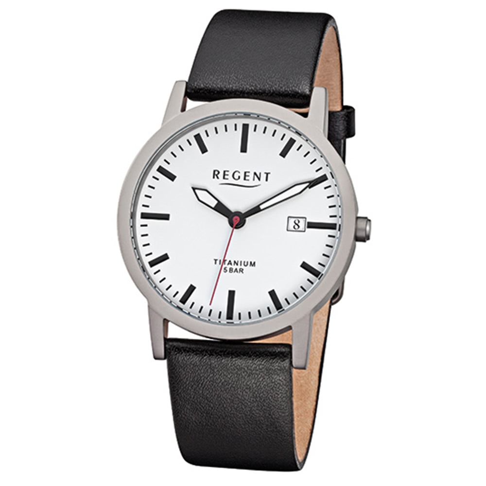 Regent Herrenuhr F-849 Titanuhr mit Leder-Armband schwarz URF849