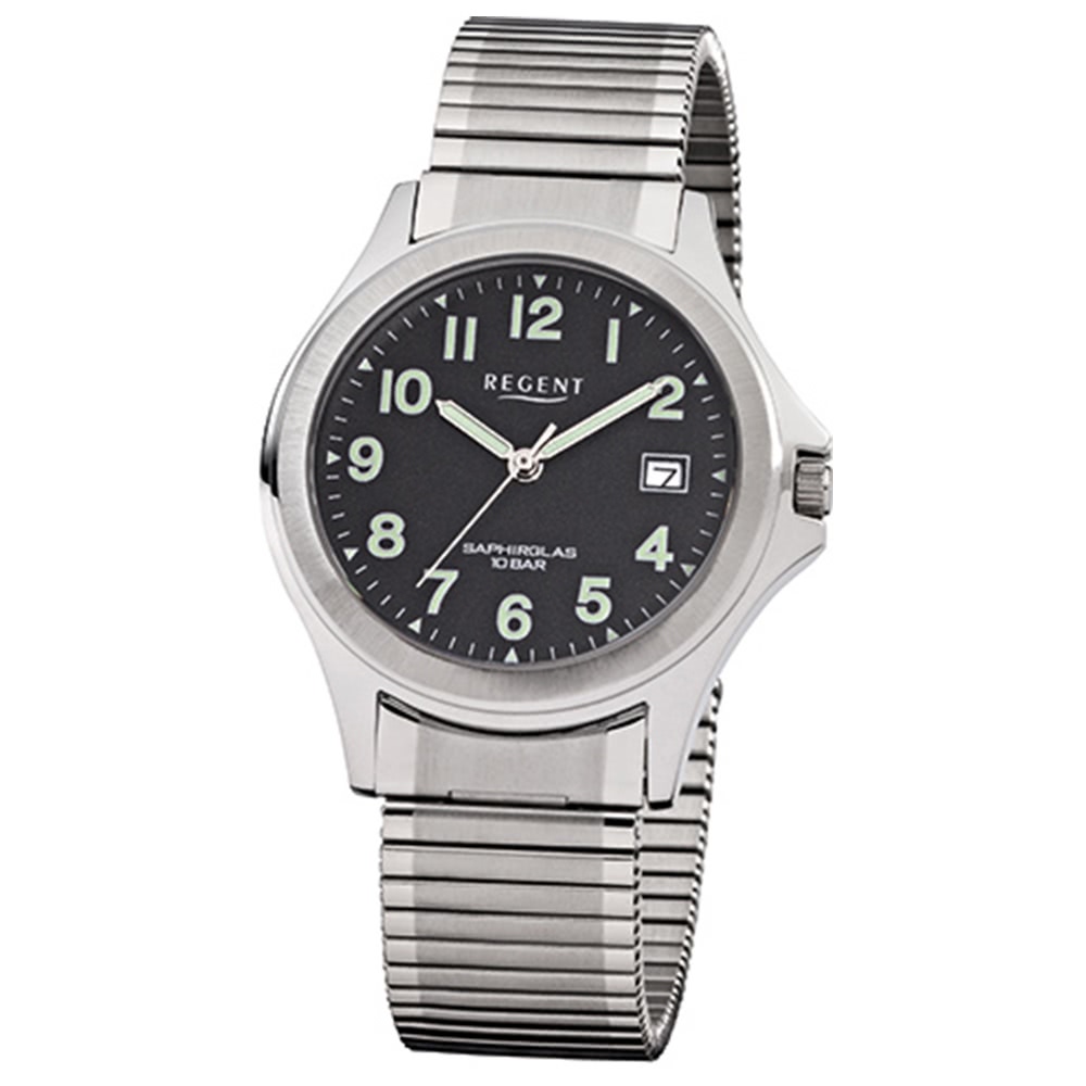 Regent Herrenuhr F-878 Quarz-Uhr mit Stahl-Armband silber URF878