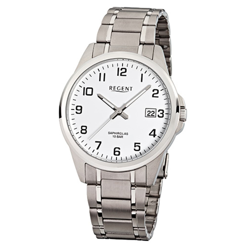 Regent Herrenuhr F-925 Quarz-Uhr mit Titan-Armband silber URF925