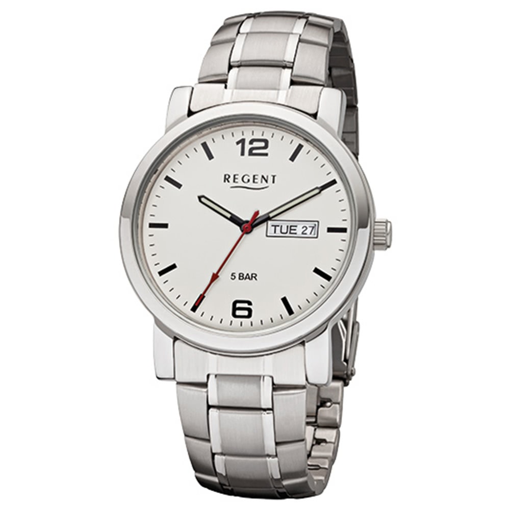 Regent Herrenuhr F-956 Quarz-Uhr mit Stahl-Armband silber URF956