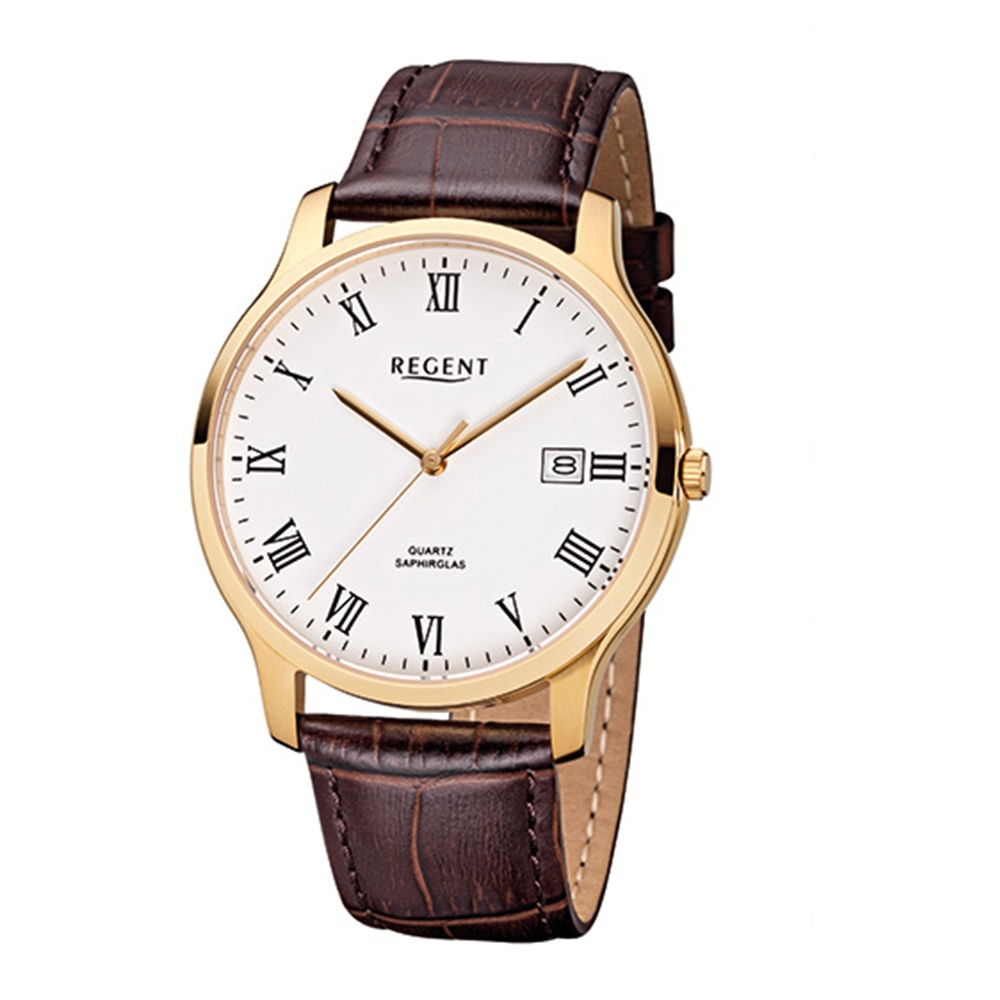 Regent Herrenuhr F-961 Quarz-Uhr mit Leder-Armband braun URF961
