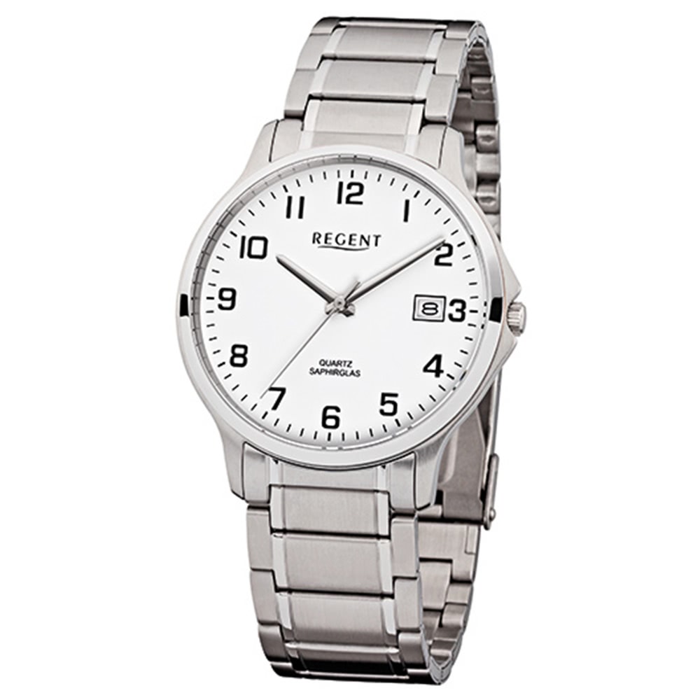 Regent Herrenuhr F-963 Quarz-Uhr mit Stahl-Armband silber URF963