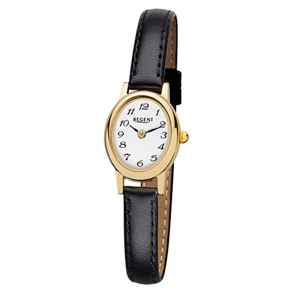 Regent Damenuhr F-977 Quarz-Uhr mit Leder-Armband schwarz URF977