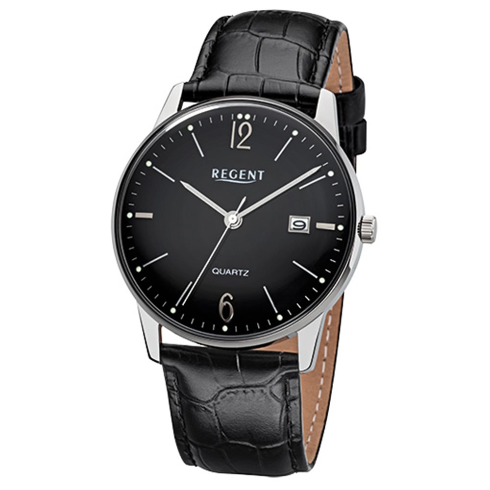 Regent Herrenuhr F-985 Quarzuhr mit Leder-Armband schwarz URF985