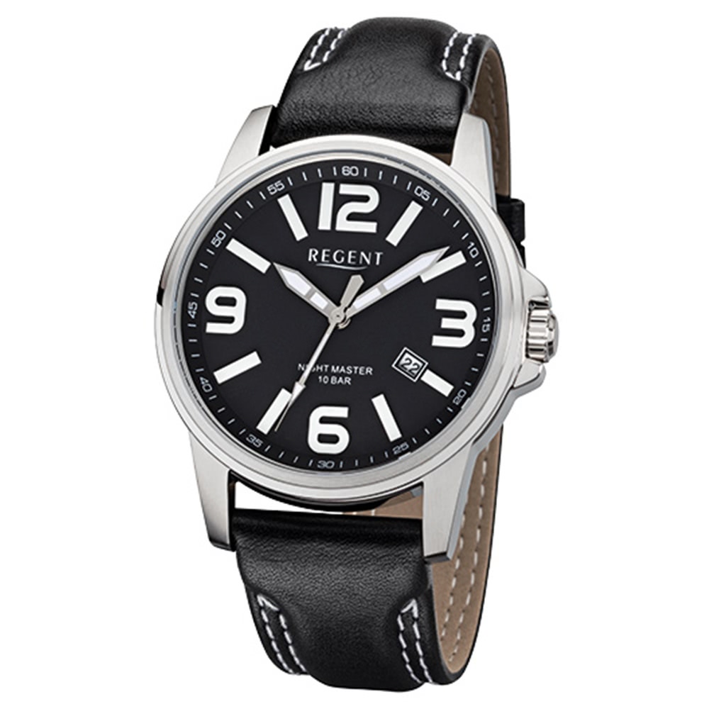 Regent Herrenuhr F-995 Quarzuhr mit Leder-Armband schwarz URF995