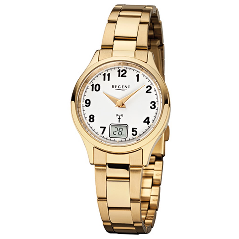 Regent Damenuhr FR-195 Funkuhr mit Edelstahl-Armband gold URFR195