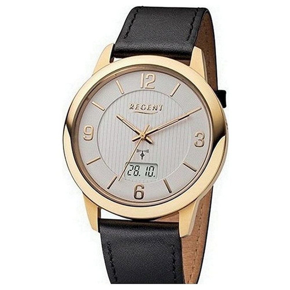 Regent Funkuhr Herren FR-200 Analog-Digital Armbanduhr Leder schwarz URFR200