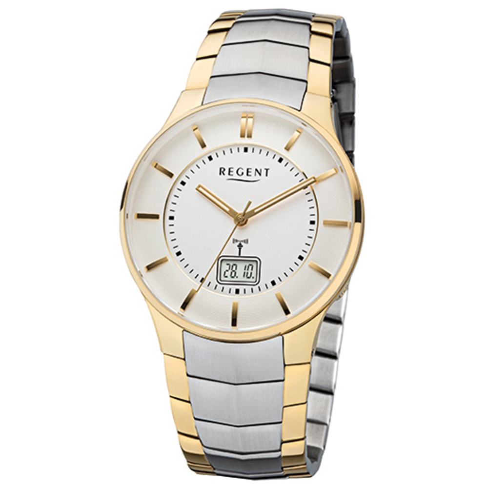 Regent Herrenuhr FR-213 Funkuhr mit Edelstahl-Armband silber gold URFR213