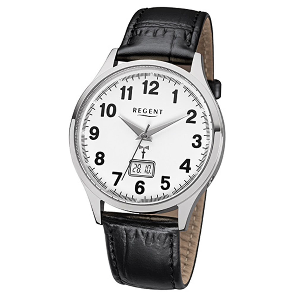 Regent Herrenuhr FR-228 Funkuhr mit Leder-Armband schwarz URFR228