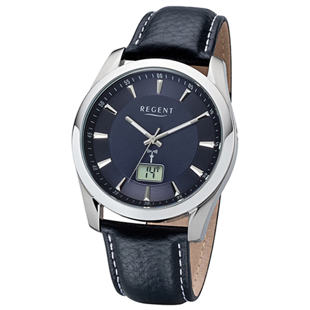 Regent Herrenuhr FR-233 Funkuhr mit Leder-Armband blau URFR233